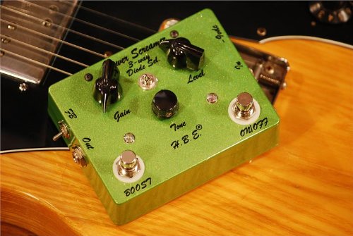 The HBE Power Screamer with Fat Boost is an overdrive pedal providing many different overdrive sounds. It features the original JRC 4558 IC and true bypass switching. The Power Screamer sounds best when ran thru the input of a tube amp. Never run the Power Screamer thru an effects loop.Controls: